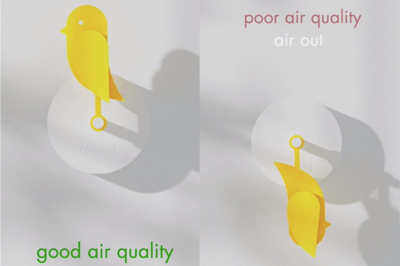 The Canairi has a CO2-sensor that activates a motor to make the bird go down. It drops when the CO2 goes over 1000 ppm for more than ten minutes. When it’s below the said level, the Canairi will go back up. The designer described the Canairi as “a democratic design language that makes it simple for children to understand but also invites the minimalist adult to play along.”